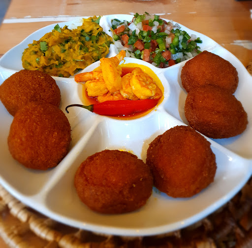 Read moreAmbiente limpo. Cheguei por volta das 12h20, o restaurante estava cheio e não tinha fila de espera. O atendimento foi bem atencioso; o garçom tirou todas as nossas dúvidas sobre as opções do cardápio. O restaurante tem algumas particularidades. Se eu for almoçar sozinha, a opção de prato individual é SALADA. A maioria dos pratos servem duas ou três pessoas. São bem generosos. Não vejo isso como uma boa estratégia. Eu queria comer peixe e o meu marido queria comer carne – o cardápio do restaurante não te oferece pratos individuais (Somente salada)! Nos viramos almoçando as entradas do cardápio. O camarão estava muito bom! Para quem gosta de muito sal, o saleiro fica disponível em todas as mesas. O acarajé... nem sei por onde começar. Primeiro, o acarajé estava frio e com a parte externa amolecida – deveria estar crocante. Acredito que foi feito antes e enfriou! O vatapá... cheio de folhinhas, não ficou nada legal e ainda mudou o verdadeiro sabor do vatapá. Os camarões que acompanhavam o acarajé eram cozidos e mergulhados no azeite de dendê. Sendo Baiana, digo que o camarão que acompanha o acarajé é camarão seco. Enfim... Acarajé reprovado! Também já experimentei os hambúrgueres de camarão e achei muito bons. Os molhos que acompanham...