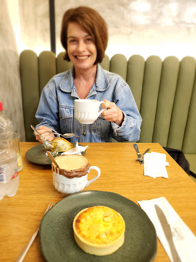 Read moreSe você seguir meus comentários verá que não dou 5 estrelas. Mas o Divino's Café é um café muito, muito diferente. O cardápio de petiscos e opções diferenciadas é de alta qualidade e surpreendentemente saboroso. Eles não apenas vendem livros, mas também incentivam a leitura e o estudo no interior bem projetado, mas pequeno, com mesas ao ar livre disponíveis. Selecionei duas opções de café, uma combinando café expresso com suco de laranja espremido na hora (coberto com um raminho de hortelã) e um cappucino mais tradicional em uma xícara com borda cremosa de chocolate. Nunca tinha provado uma quiche de damasco e brie e a que me serviram o pequeno pessoal da cozinha do Divino foi uma delícia! A empanada de cogumelos que meu parceiro selecionou ofereceu um segundo sabor surpreendente, considerando os poucos ingredientes envolvidos. Finalmente JCamburi tem um café de 1ª classe que tenta coisas diferentes e acerta por 5 estrelas. Pretendo voltar em breve ao Duvino Refugio...