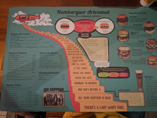 O restaurante é temado no nome do grande led zeppelin, sua decoração é impecável, nunca vi nada igual, dos interiores ao cardápio tudo é feito com carinho e amor, e para mim que gosto de rock é um prato cheio definitivamente.