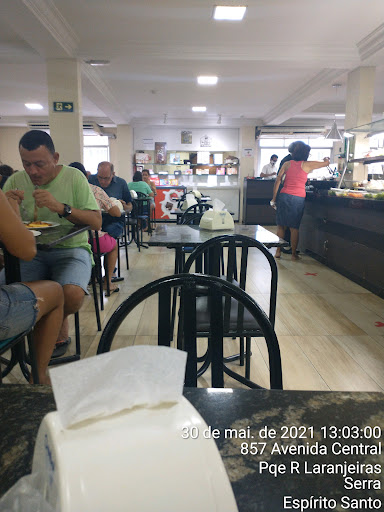 Restaurante fica no segundo andar no Centro de Laranjeiras em Serra, acho que em cima da Itapuã ou loja amiguinho, não tenho certeza agora. Tem um cardápio bem variado e algumas sobremesas lindas, pena que não experimentei. Mas comi um tropeiro absurdamente gostoso e uma carne assada com molho que estava divina. O atendimento nas mesas é bastante eficaz, não deixam tua mesa acumulada de pratos e talheres, enfim, estão sempre atentos e recolhendo os utensílios usados. Pedimos dois copos de suco, não vendem jarra infelizmente, mas foi entregue com a mesma rapidez que mantêm as mesas limpas. E o atendimento na balança e caixa, cortes e com sorriso no rosto. Ahh e o ambiente é climatizado. Gostei bastante, segunda vez que volto e é sem dúvidas uma opção pro...