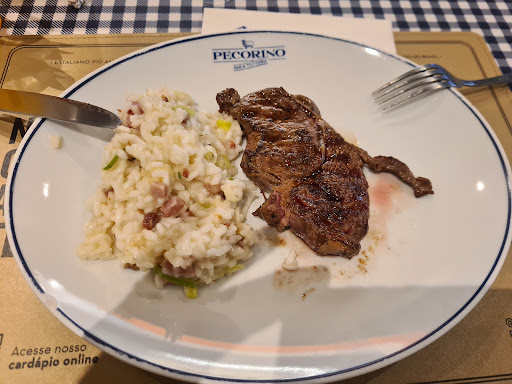 Read more"Um menu executivo é um tipo de refeição fixa oferecida por restaurantes, geralmente durante o almoço, que inclui uma seleção de pratos a um preço fixo." "Menus executivos são versões simplificadas dos pratos oferecidos nas casas..." Basta pesquisar no Google para ver definições de "menu executivo" que, em tese, deveria ser uma refeição mais rápida de ser preparada e servida, em horário de almoço, quando estamos no intervalo do trabalho. Infelizmente o Pecorino não conhece essa definição e leva de 1:30h a 2h para servir um prato do menu executivo. Ou seja, não posso nem avaliar a comida do restaurante, pois não tive (mais) tempo e paciência necessária para aguardar após 1:30h de espera. Garçons despreparados para dar um retorno ao cliente e o ambiente só é ok porque fica dentro de um shopping (ah, mas as mesas são bambas, ficam balançando). Não recomendo o restaurante porque não vale o estresse.