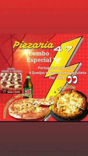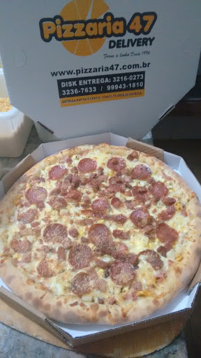 Sempre fiz meus pedidos na pizzaria 47. No entanto, nos meus últimos 3 pedidos, veio faltando o refrigerante, a pizza veio revirada, porém, no meu último pedido foi a gota d'água. Realizei meu pedido as 20:58, eram 22:40 e nada das pizzas chegarem. Liguei e perguntei sobre elas e fui informada que o motoboy já estava na rota para entrega. Se passaram mais 30 min e nada. Liguei novamente e me informaram que o motoboy teve que entregar pizza em 3 condomínios no qual teve que subir até o último andar e não havia elevador . Hahahahahaha, só rindo mesmo, né ?! Esperei mais 15 min e nada. Liguei cancelando.