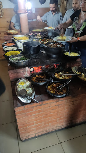 O local é bem legal, parece muito com restaurantes que a gente encontra pelos interior da vida, bem rústico , a decoração tem cela de cavalo pela parede, alguns ítens de antiguidades bem bacana pelos armários e dois ambientes, um com tv e ar condicionado...fiquei na parte roça mesmo... o sistema é Self Servive e já fiquei de cara com o valor do kilo " R$32,00" é pra aplaudir de pé !! a comida fica num fogão à lenha e tem de tudo que uma boa casa na roça nos oferece... arroz, feijão, macarrão, feijoada pesada ( não essas que tenho visto por aí onde só tem linguiça ), carne de boi, porco, frango...e aquela iguaria maravilhosa que divide opiniões e separa os homens ( héteros ) dos meninos nutella - Chouriço ! Êita inferno!!! meti logo uma pimenta que quase saltaram as bolotas dos meus zói, mas matei meu desejo !! delicia !! a comida é muito gostosa mesmo! pedi um suco de laranja ao garçom Sérgio, garotão novo , super educado e que se aventurasse pelo basquete teria um futuro bacana devido sua altura. Lá eles funcionam de segunda a sexta de 10:30 as 14:30... Considerações finais é uma comida sem muita frescuragem e de um sabor muito gostoso...aquela comida de vc bater um pratão, colocar um netflix e depois de 5 minutos de filme pegar no sono e acordar com uma vistosa baba no travesseiro sem nem saber...