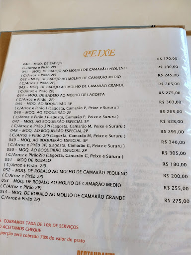 Read moreArrependimento, pior moqueca que comi na vida, peixe estava com aspecto de passado, o camarão VG ficou duro pois foi muito cozido, o molho da moqueca parecia uma água, o pirão parecia água com farinha , totalmente sem tempero , a única coisa boa foi a moqueca de banana da terra , porém vem uma quantidade muito pequena, fui centenas de vezes no curuca e gaeta, restaurantes próximos, em comparação com esses dois o boqueirão tem que melhorar muito , detalhe, minha moqueca custou 300 reais com os 10%. Tanto no gaeta quanto no curuca , são oferecidos de graça , camarão pequeno frito na entrada e torta de coco na sobremesa, não vi nada disso...