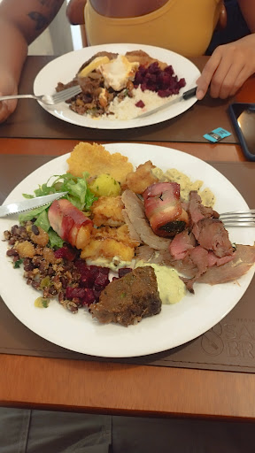 Péssimo atendimento dos churrasqueiros, peguei meu prato e fui pegar carne, o cara mandou esperar porque estava contando carne para as marmitas, so tinha eu esperando, como vi que estava enrolado, fui pegar a comida na esperança dele desenrolar, depois que peguei a comida cheguei novamente para pegar a churrasco, só tinha eu, mandou esperar novamente porque continuava cortando carne para as marmitas, só tinha um cara, voltei peguei um bife e fui almoçar, churrasco? Melhor não ter no lugar, se não tem capacidade de atender uma pessoa imagine com movimento? Ou só vende marmita e pronto. Cheio de vontade de comer um churrasco, não deu certo. Na próxima vou em outro restaurante. Incompetência total no atendimento aos clientes. Talvez não...