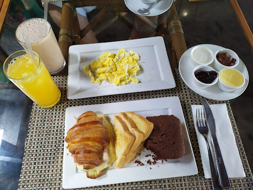 Read moreLugar super legal a comida chegou rápido e quente, pedi um santo graal a dois que por 50 reais vem um ovo mexido,um croassaint, que você pode pedir com ou sem recheio, 4 torradas e um bolo que pode ser de chocolate, banana, fubá e laranja. Pedi o de chocolate, banana e o de fubá que estava meio seco. No caso do santo graal a dois vem tudo isso em dobro. Ele também acompanha uma bebida quente e um suco de laranja que pode ser trocado por uma salada de frutas, eu pedi um chocolate quente frio e eles trouxeram exatamente isso o chocolate estava cremoso e muito saboroso. Lá eles tem uma padaria na entrada onde você pode comprar vários salgados doces e pães. Eles também tem almoço e eles também alugam o lugar para festas. Não tenho nada a reclamar a comida estava ótima e o atendimento também só o preço que é realmente muito caro. Não vale tanto a pena mas recomendo ir uma vez para experimentar. Dei 4 estrelas apenas por...