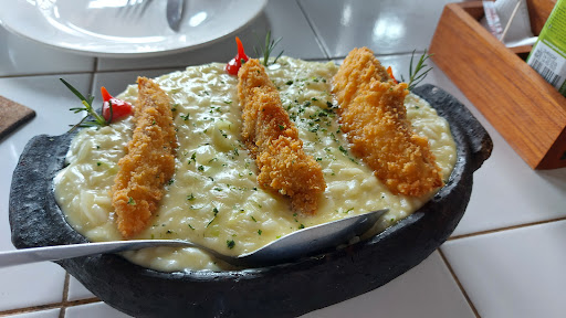 Fomos em três pessoas no dia 19/01 e o local estava bem vazio. Tem uma vista bonita, mas o restaurante fica no primeiro andar e não vi opção de acessibilidade. As opções do cardápio de prato são para compartilhar, sendo individual apenas o prato kids. Uma das pessoas que estava comigo não come peixe e come pouco, por isso quis pedir o prato kids. Ao pedirmos a garçonete informou que o prato era para até 13 anos, informação que não constava no cardápio e se recusou a pedir, dizendo que poderia pedir meia porção de um prato para compartilhar, sendo cobrado 65% do valor (essa informação também não estava no cardápio). A pessoa que estava comigo não se interessou por nenhum outro prato, e ela realmente come muito pouco, então provavelmente haveria desperdício de comida. Tive que insistir com o estabelecimento para que fosse servido o prato kids, pois a recusa fere a lei de proteção ao consumidor. Após isso, aceitaram servir. Então pedimos o tal prato e uma porção de peroá com fritas e acréscimo de arroz. Mesmo com restaurante vazio o prato demorou muito para ficar pronto. O peixe estava gostoso, mas as batatas estavam murchas. Eu não voltaria nesse lugar ou mesmo o indicaria. Acredito que na região há outras opções que possam atender melhor ao cliente e com mais...