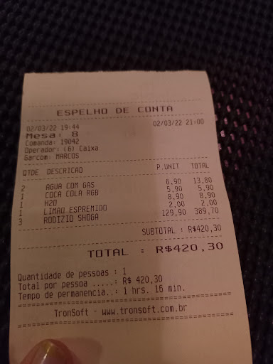 O que tenho a dizer é que o atendimento é razoável, a comida é boa mas nada de mais. A apresentação da comida deixa um pouco a desejar. O problema é o preço, você paga 59,90 pelo rodízio que não é caro, mas tem que pagar 5,90 em uma garrafinha de 280ml de coca cola, 8,90 em uma long neck de cerveja comum, 25,40 em uma dose de saquê nacional. Preços absurdos que não condizem com localização do estabelecimento nem com a estrutura nem com a qualidade da comida nem com qualidade do atendimento.