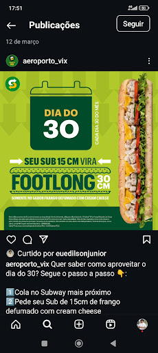 Read moreLançaram uma promoção HOJE do quarta em dobro e fui verificar quais os restaurantes participantes, constatei que o Subway do aeroporto estava participando. Ao chegar o estabelecimento, a atendente informou que a promoção não estava valendo pra lá, mesmo estando nos restaurantes participantes, tudo correto, ela não quis me vender. Quando mostrei a promoção, ela confirmou que era realmente o endereço de lá mas que não estava ciente de nada e ligou para um tal de ramon que perguntou se éramos clientes ou funcionárias. Um descaso total! Se está escrito que a promoção está valendo, tem que fazer! Não...