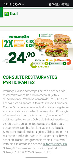 Na minha compra de um Subway, no aeroporto de vitória-es, fui deparada com a limitação de molhos, questionei sobre, funcionárias mal treinadas e sem educação, disseram que era regra do estabelecimento, e que o dono que mandava ser assim. Mostrei a pauta na internet e disse que estaria dizendo o contrário, foram arrogantes comigo e disseram que eram apenas funcionárias e seguiam regras, eu questionei sobre regras escrita, não tiveram provas sobre a tal. Contudo, foram cinicas e falaram pra colocar a quantidade de molhos q eu eu queria. Fui super mal atendida! Estou decepcionada com O SUBWAY DO...