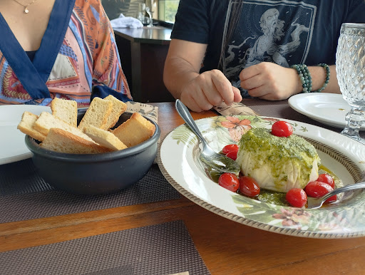 Read moreAmbiente arejado e clean com uma visão incrível da cidade de Ipiabas. A casa tem móveis rústicos e trás sensação de aconhego. Além de servirem pratos, também vendem itens como queijos, vinhos, massas e doces. Aparentemente os itens são de qualidade, principalmente as carnes, então não espere um valor baixo por pessoa. Entrada: burrata com molho pesto e tomate cereja Pratos: mignon da casa, incluso 6/7 pedaços de mignon assado, arroz, batata frita, salada, farofa, vinagrete e salada de batata (serve 2 pessoas com fartura); risoto de funghi com tiras de filé mignon; filé de tilápia com camarão e arroz. Pedimos 2 águas com gás e uma lata de coca cola. Todos os pratos foram amplamente elogiados e ficamos felizes com a experiência. Particularmente, minha sugestão seria acrescentar feijão aos itens do mignon da casa e temperar mais a farofa e o arroz que o acompanham, pq estavam sem tempero algum, não valorizando a montagem e entrega do prato. Total R$506 e estávamos...