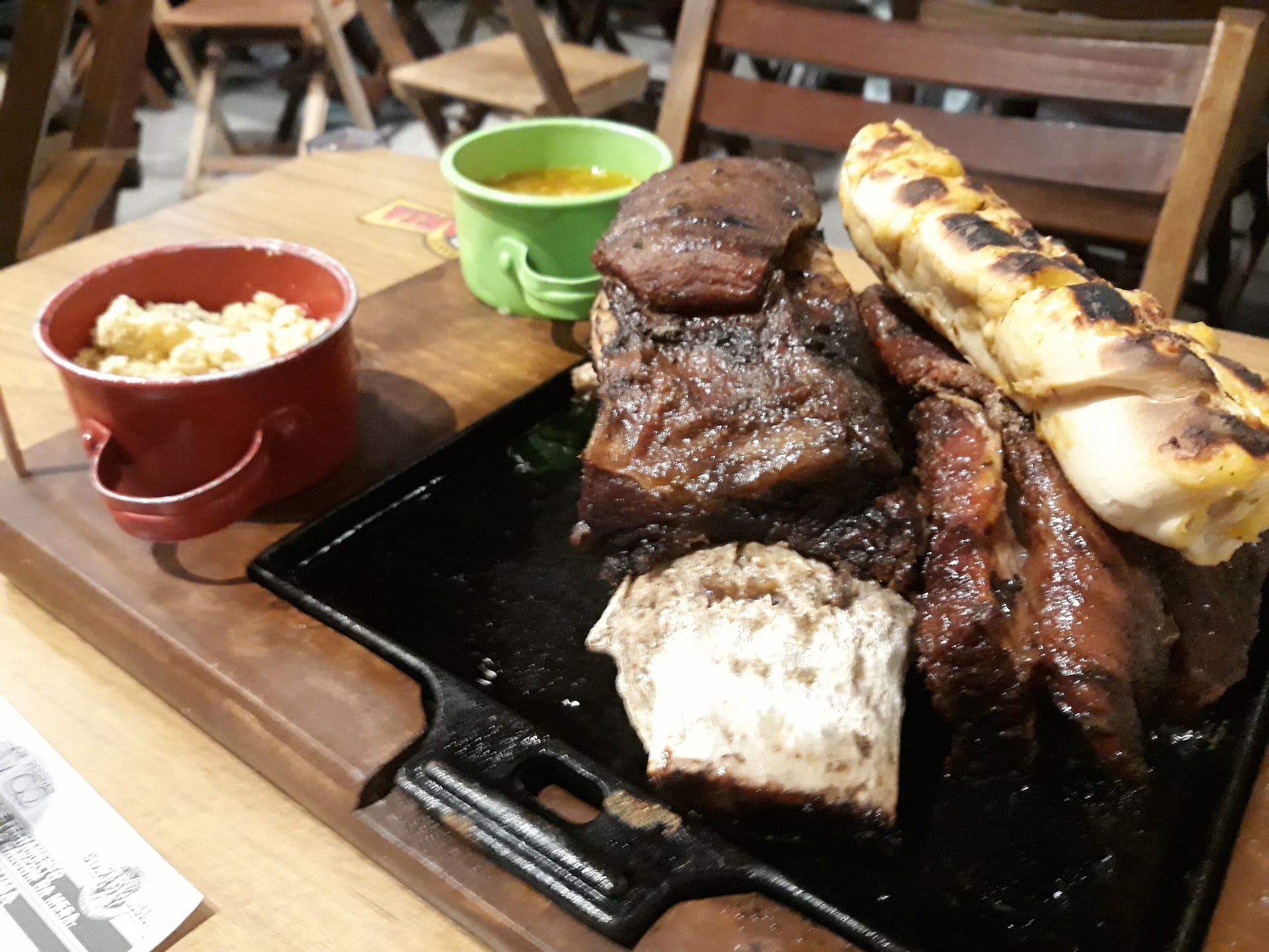Read morePrimeira vez jantando no local, e minha experiência não foi a que desejava, pedimos um prato que pelo cardápio serve 3 pessoas,mas quando chegou servir 1 1/2 pessoa 😬 não gosto de carne suculenta ,mas meu esposo e meu filho gostam, me informei se poderia vir a carne suculenta, e a resposta foi sim, garçom complementou, dizendo: que a tabua viria quente e eu poderia finalizar a carne ao meu gosto. Após longos tempos de espera, chegou...a tabua fria, pao de alho frio,a carne fria e muito bem passada, a ponto de ter pedaços secos, uma colher de vinagrete e 1 colher de farofa, ah os acompanhamentos para viagem, tinha porções maiores que a servida no local. A comida dei preferência para meu filho comer e se sentir satisfeito.para então eu provar. A galera que chegou muito depois de mim, comeu uma costela saindo fumaça.... kkkkk acho que pedi o prato errado, apesar de constar no cardápio, entende-se que talvez o "carro chefe"da casa seja a costela, já que estavamos em uma costelaria. Depos de tudo isso me vem a duvida se o que comemos era de fato o Chorizo pela...