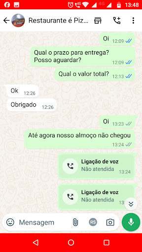 Read moreAtendimento horrível, demoraram 2 horas pra me entregaram uma comida, eu fiz o pedido e simplesmente desapareceram e nem me comunicaram que a comida ia demorar pra pelo menos eu pedir em outro lugar, fiquei com fome passando mal e sem um retorno depois de mais de 5 ligações.