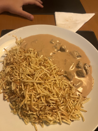 O strogonoff não chegou atrasado. Chegou ruim mesmo. Os outros pratos que atrasaram mais vieram cerca de 20 minutos depois dos pratos de churrasco.