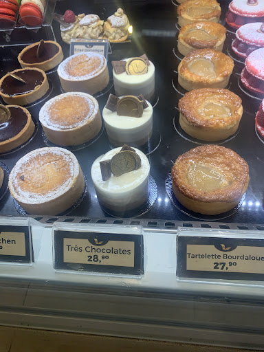 Read moreO espaço da cafeteria é pequeno, porém acolhedor e agradável. Todos os produtos ( salgados, pães, doces), visualmente são bem elaborados e atraentes! Quanto ao quesito do sabor, não tive uma boa experiência degustativa. Escolhi conhecer este doce denominado” três chocolates”. Perguntei ao atendente sobre o doce e fui informada que ele possui camadas de creme feito com chocolate meio amargo, chocolate ao leite e chocolate branco, além de uma camada fina de pão de ló. Bem, ao meu paladar, não senti o sabor do chocolate ( em nenhuma destas três camadas). O chocolate que vem por cima do doce, como na foto não é chocolate de qualidade pois senti apenas sabor de gordura hidrogenada! O café é servido em xícara menor que o tamanho padrão para café expresso curto! A xícara é bem pequena. Quanto ao custo, considero muito alto para a baixa qualidade e quantidade usada nos ingredientes, isto com relação ao doce que foi o meu pedido. Paguei 43 reais. Não generalizo a minha experiência para os demais produtos do estabelecimento pois não os experimentei, mas saí da loja sem nenhuma vontade...