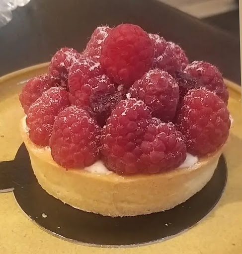 Achei caríssimo $38 esse tartelete de chocolate branco com framboesa, mas ele é enorme e vem muita framboesa! Delicioso, foi a 1° vez q consegui comer um tartelete inteiro