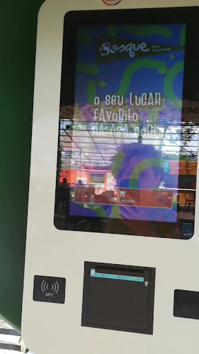 Read moreO lugar é bonito, mas basicamente é uma área coberta (bem ampla) com os trailers e uma área verde bem pequena em volta, nas publicações de divulgação parece ser bem maior. Boa opção para ir com pessoas de preferência gastronômicas diferente por ter boa variedade de cardápio, apesar de alguns preços serem altos. Os pedidos são feitos nos Totens em formato de orelhão, bem lúdico e permite que você faça pedidos em diferentes trailers ao mesmo tempo, quando fica pronto a loja te manda um WhatsApp informado para retirar no balcão. O que detestei no local: as poucas mesas que ficam na parte descoberta, inclusive as pouquíssimas que são com as cadeiras de praia, são as próximas ao parquinho, e nessa área segundo o segurança é permitido fumar, na noite que fomos o cheiro de fumo no parquinho era forte, tinham pessoas com diferentes tipos de cigarros, acabamos saindo logo pelo incomodo, então NÃO RECOMENDO O BOSQUE PARA IR COM CRIANÇAS caso a escolha do local seja por ir a um restaurante com opção de lazer para elas. Pedimos hambúrguer: pequeno e com o sabor de um fastfood famoso, a batata frita simples, sem qualquer diferencial. Pedimos duas sobremesas: um milkshake e um sorvete no churros, em ambos o sorvete utilizado é de máquina e muito, muito aguado! Acredito que para voltar ao local seria sem as filhas, sentando na área coberta e com outras escolhas...