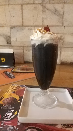 Vi o copo de vidro (o olho brilhou) o rapaz disse q tinha milk shake. Milk shake de baunilha com gosto de baunilha, ótimo (sem gosto de leite, como é normal em outros lugares).