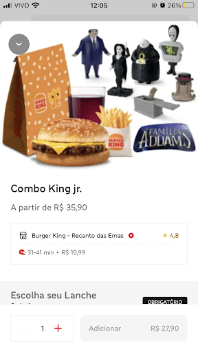 Hoje, após efetuar uma compra online do Combo King Jr. me foi entregue um brinquedo da promoção do Garfield. Alguém ao menos sem lembra de quando o brinde foi o Garfield ???! Pois é. Não é informado em nenhum lugar que acabou o estoque dos novos brinquedos, na descrição do item o cliente é induzido a acreditar que receberá algum brinquedo da Familia Addams... e convenhamos, só se compra o Combo Jr por causa do brinquedo. O estabelecimento nem mesmo responde as mensagens no chat (além de quê poderia facilmente ter informado via chat que não havia o brinquedo da descrição e deixado o cliente optar por continuar com a compra ou cancelar). Péssimo atendimento. Merece reclamação no Procon pra ver se aprendem a tratar bem...