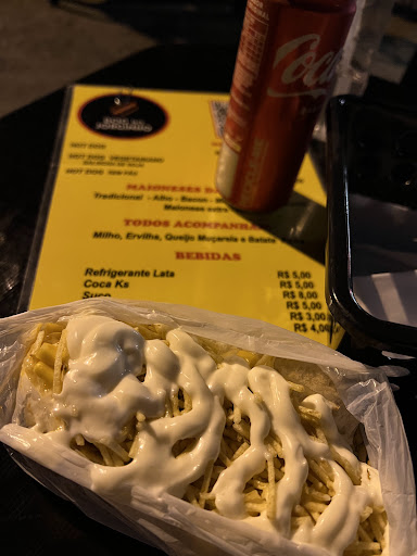 Ahhh!! Vou indicar uma boa montagem do Dog: Cachorro quente duplo; Quantidade média de queijo; Quantidade média de molho; Milho e batata palha. Maionese tradicional antes e após colocar a batata.