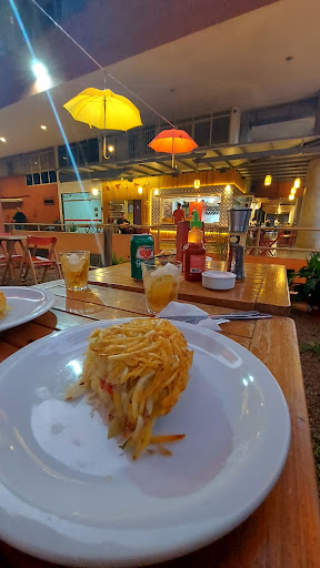 O local é super fofo, aconchegante, bonito e fresquinho. Tem rede, balanço pendurado na árvore e algumas mesas com vela no centro. Tem esses guarda-chuvas que deixam o ambiente bem chamativo, colorido e lindo. Pedimos suco natural de maracujá (R$ 9.90), uma batata rostie de calabresa, tamanho G, serve 2 pessoas, (R$ 67.10) e uma batata rostie de frango e requeijão, tamanho P, serve 1 pessoa, (R$ 41.20). Em ambos achamos pouco recheio. Acho que falta sabor e temperos no frango, não anula o fato de ser bom mas poderia ser muito melhor considerando o preço. O atendimento é bem ok, são educados, simpáticos, gostei bastante. Não sei informar se o local tem banheiro para público. Vale a...
