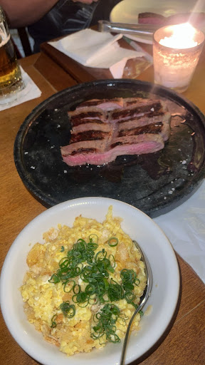 É uma casa de carnes com bastante opções de cortes, das clásssicas picanha e fraldinha, à carnes wagyu e angus. Você pode optar por cortes individuais (300g) a cortes pra compartilhar (500g). No dia, fui com 4 amigos e pedimos um ancho e uma fraldinha pra compartilhar. A carne veio no ponto ideal e muito boa. Acompanhamentos à parte, pedimos batata frita, uma farofa de ovos e arroz biro biro, que estavam boas!