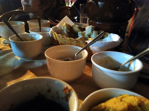 E a comida? Ah, foi magnífica! Ali, entre uma história e outra desfrutamos dos diversos sabores. Pedimos fondue na chapa e no óleo. Pra ser sincera, o da chapa foi o melhor! Não soltava nenhum odor e achei bem mais seguro.