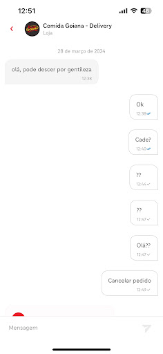 Read moreFiz pedido pelo Ifood, foi colocado como comida entregue porém nunca chegou. Ao ligar para o restaurante para pedir informações do que aconteceu o proprietário colocou toda responsabilidade no ifood e mandou eu ligar para la. Ao questionar como fico como cliente, o mesmo disse que não poderia fazer nada por mim. Total desrespeito, poderia ter enviado outro pedido enquanto eles resolviam com o Ifood, isso seria um atendimento profissional, inteligente e respeitoso. Não indico, péssima imagem do...
