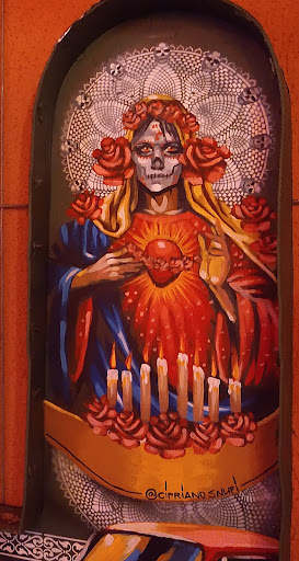 Como católica e devota da Virgem Maria Mãe de Deus, a qual possui mais de dois mil títulos por Sua Realeza celestial, inclusive o de Nossa Senhora de Guadalupe, fiquei chocada ao me deparar com uma pintura na parede que, no mínimo, contradiz com os ensinamentos dogmáticos da Igreja Católica Apostólica Romana, da qual a grande maioria dos brasileiros e de demais países latino-americanos faz parte.