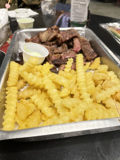 Read moreEm outros tempos eu daria 5 estrelas ao espaço, mas hoje em dia é impossível! Desde que lançou o espaço já passou por algumas alterações! Trata-se de um galpão onde funcionam alguns restaurantes. Hoje (junho/2024) tem o Sushi Gourmet, um restaurante que vende frangos no pote e um restaurante que vende hambúrguer e carne! O local é agradável! Um ambiente familiar. Tem uma brinquedoteca (mini, mas tem), algumas mesas, banheiros e música ao vivo (sem cobrança de couvert) em alguns dias da semana. Digamos que o que mantém o lugar em pé hoje é o Sushi (que é muuuuuito bom mesmo, recomendo)! Porque o frango no pote é gostoso mas não entrega novidade e o restaurante do hambúrguer é um caos! Estive lá com amigos dia 12 de junho para comermos sushi, mas como a fila estava grande (eu disse que é bom) resolvemos pedir uma carne no restaurante do hambúrguer (que não cito o nome porque na fachada só tem escrito “hamburgueria”). O meu pedido demorou mais de 1h. Sendo que pedi exatamente depois da minha amiga e o dela veio mega rápido! Quando chegou, a carne chegou fria, mal passada (não gosto e ninguém me perguntou o ponto da carne). A batata era a única coisa que estava boa (pq não tem muito como errar né, afinal, é só fritar). Deixo a foto para vcs verem como um CHORIZO ANGUS foi servido (59,90 essa porção). Pedimos tb uma outra porção de batata com cheddar e bacon q estava ok!