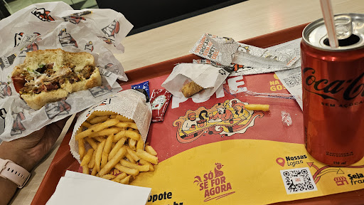 Como o nome já diz: só possuem alimentos como frango (não há sanduíches com carne bovina, por exemplo). Mas as três estrelas não são por conta disso, mas pelos pontos a seguir: no dia que fomos estava bem vazio (só havia um casa e uma família, mas as mesas vazias estavam bem sujas , com restos de alimentos); mas o que mais me desagradou foi ter que ficar ouvindo músicas “pisadinhas” e funk como música ambiente no local)....