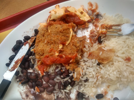 Read moreComida ruim, quantidade totalmente incompatível com o valor que se paga, 3 pedaços de frango no estrogonofe e um mar de alface/tomate. Ao reclamar no estabelecimento, questionando se havia algum lugar para sugestões, disseram que nao. A moça do caixa, coitada, sem saber o que fazer chamou a “gerente”, que deu de ombros pra reclamação e não deu sugestão alguma para resolver o problema....
