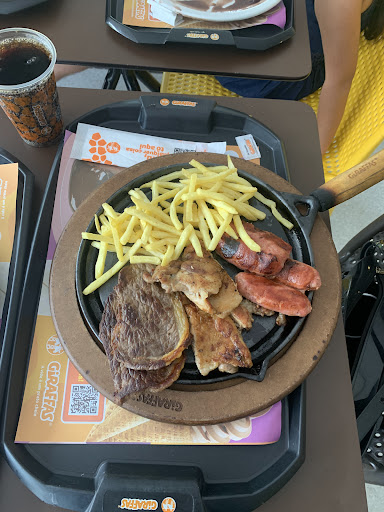 Read moreMinha família adora o Giraffas, mas a nossa experiência com esse estabelecimento foi péssima. Primeiro, tivemos que esperar mais de uma hora pela comida, e muitas pessoas que pediram depois receberam antes de nós. Então, fomos reclamar. Na primeira vez, foi o meu marido, e ele foi respondido com: "Não tem como parar para olhar". Depois, fui eu reclamar da demora, pois não estávamos na fila que diziam que existia. Finalmente, fizeram o nosso pedido. O frango estava cru, o purê estava sem sal e, se eu não tivesse reclamado, eles teriam colocado quatro batatas mixuruca, pelas quais paguei R$...