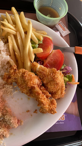 Read morePagamos quase 70,00 R$ em 2 porções, quantidade minimissima, comida demora, fria sem sabor, filé duro pedi adicionais de molho, fritas e purê mais talheres.. sai do estabelecimento já desgostosa, voltei 5 minutos depois pra pegar os adicionais, perguntei a atendente onde estava o restante do meu pedido ela não respondeu, achou ruim eu ter voltado lá, perguntei pelo sal e o molho e ela também não respondeu.. agradeci, dei tchau, também não respondeu nada, o outros funcionários olhando tudo isso sem reação também, não tivemos nem gosto de comer a comida, me senti um nada. Pretendo não comprar jamais nessa rede.. e nada dos...