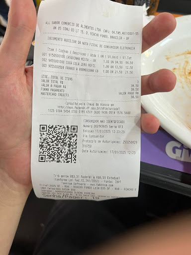 Read morePeguei uma fila enorme, mas de 30 minutos esperando para fazer um pedido. E quando chegou minha vez segunda a atendente o "sistema caiu". Então fez meu pedido "manual". Quando fui pegar a minha refeição, veio apenas o "prato de refeições, se o refrigerante pedido". Questionei sobre o refrigerante e foi me informado que não estava no pedido "manual" ou seja, paguei pelo prato e refrigerante e não me foi oferecido o serviço prestado. Então questionei ao atendente que eu havia pedido o refrigerante e que paguei por isso. Ele então me "deu" um copo de refrigerante e disse que era cortesia da casa. Enfim. Totalmente falta de profissionalismo e fiquei constrangido com a situação ocorrida. Não, piso mais nesse lugar. Se pudesse dar 0...