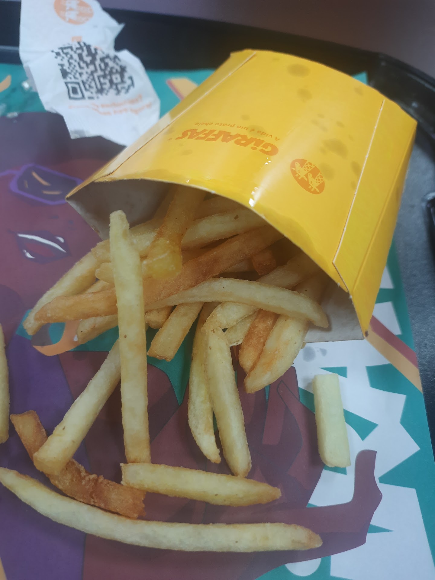 Pedi que liberassem os dois sanduíches com refrigerante e que posteriormente buscaria as batatas. Mas nem deu tempo de abrir o pacote e as batatas surgiram, mornas para frias.