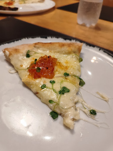 Sendo bem sincera, acho que esse restaurante tem um potencial grande, e acredito que eu tenha tido o azar de ter uma experiência ruim. O restaurante fecha às 23h. Cheguei às 22:30 com o meu marido e disseram que, pelo horário, só poderiam servir pizza. Não me importei pq era o que nós fomos comer. Escolhemos rapidamente os sabores de pizza e pedimos pro garçom. Logo após veio alguém que parecia o gerente querendo agilizar ao máximo o nosso pedido (sendo que já havíamos feito). Todo mundo gosta de ser atendido rapidamente em um restaurante, mas o sentimento de que estão te dando pressa pra escolher e te despachar logo é péssimo, e nos sentimos exatamente assim. Apesar da "rapidez", ainda conseguiram se embolar e não tinham feito o nosso pedido. Quando descobriram que algo havia dado errado e o pedido não tinha sido enviado, corrigiram e logo chegou a pizza. Pedimos a pizza de queijo brie com geleia de pimenta. A pizza é boa, mas sabe aquela sensação de que não assou direito? O queijo não estava 100% derretido e a massa TB não estava no ponto. E se tratando de uma pizza de queijo, em que o ingrediente principal não está 100%, estraga a experiência totalmente. Tenho vontade de voltar e tentar de novo, mas eles têm que rever esse atendimento mega apressado que faz com que os clientes não consigam relaxar e com que a comida não chegue num...