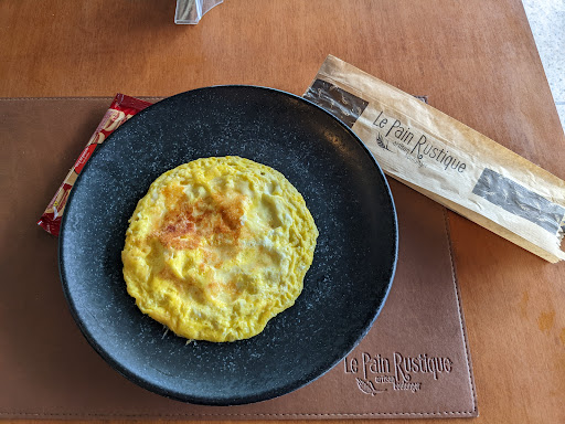 Um tempo depois a moça avisou que não tinha pão francês pro pão na chapa (sim, numa padaria). Trocamos pra baguete com queijo canastra. Quando o croissant e bebida chegaram, a moça avisou que não tinha mais queijo canastra pra baguete. Pq não avisou antes?