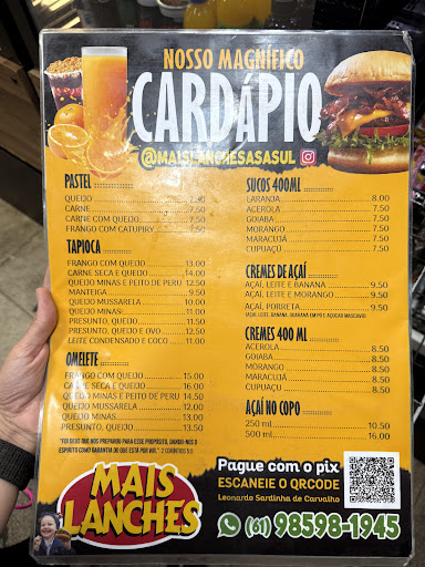 Um Atendimento muito eficiente , tratamento muito educado dos atendentes os Rapazes que cuida Lanche , Principalmente o Leonardo são bastante caprichoso no lanche sem falar do excelente sabor do Sanduíche e da Tapioca gosto muito da de queijo branco com peito de peru , sucos excelente o David chapeiro tbm tem bastante talento no q faz , sem falar do bom Atendimento do Sr Adriano Sardinha e do Rapaz Gabriel sardinha um ambiente bastante familiar sou cliente desde da época em q a Dina Valdete Sardinha e seus filhos Leonardo e Thomaz Sardinha tem o Quiosque equipe...
