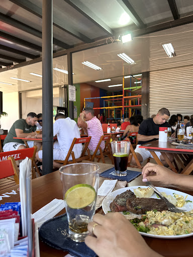 Read moreAmbiente agradável, bem localizado, com brinquedoteca à parte para quem tem filhos pequenos, com comida razoável, bem servida e com valores compatíveis, mas com carnes que parecem não ser condizentes com o que está no cardápio, ou seja, filé que não tem textura de filé, picanha que parece não ser picanha. O serviço não é dos melhores, pois a cobertura do garçom é imensa e por vezes espera-se dezenas de minutos pra ser atendido, o que obviamente não é culpa do garçom, que por sinal nos atendeu muitíssimo bem quando disponível. OBS: pode ser que a picanha tenha sido mal executada? Pode. E retornaremos mais vezes pois outros pratos nos agradaram muito, os de frango principalmente, executados à perfeição, mas no caso do filé à parmegiana, consumido nessa e em outras ocasiões, impossível ser mesmo filé, pois esse não tem como ser confundido, sendo de nossa preferência e sugestão o frango à parmegiana, porém servido apenas à noite, e aí fica nossa sugestão de ser...