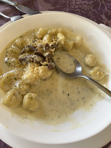 Explico o que ocorreu: ao chegar no restaurante reparei que ele estava completamente vazio. Até aí, tudo bem. Porém ao fazer o pedido, comecei a escutar barulho de forno microonda apitando, abrindo e fechando porta. Gelei… quando a comida chegou, tive a infeliz supresa de constatar que me serviram comida pre-pronta, sem gosto e sem graça. E por preço não condizente com a entrega. Na foto está meu prato. Era para ser um nhoque de batata, com molho cremoso de gorgonzola e fatias de carne. A massa estava densa, o molho não era nada cremoso (aguado e se sem graça) e a carne dura. E em vez do prato vir gratinado, veio maçaricado. Não gostei. Metade da comida ficou no prato.