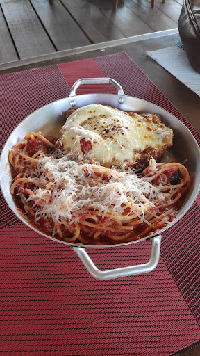 The restaurant has a great view of the lake, so I suggest sitting outside. It took some time to find the entrance of the place because the GPS was missing the entrance, until we found out we had to first enter the condo, then get access to the restaurant. Service was good and fast, and I wanted to try everything on the menu! I ended up having a risotto of filet mignon and my brother had the parmegiana of filet:...