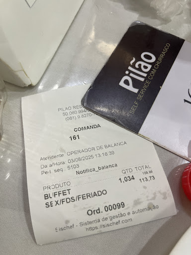 Read moreDESONESTOS! Utilizam o recurso de mostrar bem grande o valor de R$10,99, com uma letra miúda, informam abaixo que este valor é referente a 100g, e com uma letra menor ainda informam que o valor do kg é de R$100,90... Valor bem mais caro que um rodízio na churrascaria Nativas por exemplo, que é um local honesto que deixa bem claro o valor do serviço e entrega notória qualidade dos alimentos, diferentemente do restaurante Pilão, com uma carne extremamente salgada e torrada e uma variedade que jamais valeria CEM REAIS por quilo... Sentei numa cadeira bem perto do caixa e presenciei pelo menos 3 pessoas reclamando que o preço estava errado, mas aí depois de já ter consumido, fica difícil questionar. Enfim, a comida não é tão ruim, mas jamais valeria 100 reais por kg, e o ambiente Tb está longe de justificar este...