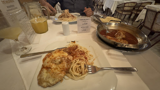 Read moreO Roma é um restaurante simples, com bom atendimento, mas o cardápio é mal montado e o preço é alto para o que oferece. Fui com a família conhecer o Roma em um almoço de sábado. Fomos eu, a esposa e nosso filho de 7 anos. A ideia era pedir um parmegiana de frango e um prato infantil. O problema começou na escolha dos pratos. O cardápio é bem extenso, tem muitas opções de pratos individuais e para duas pessoas, mas, no nosso caso, não adiantou muito. Foi muito complicado escolher. Pra começar, não tinha um prato para criança! Coisa inadmissível para um restaurante para família. Tudo bem! Eu já tava lá mesmo, de espírito aberto, tomando o vinho da casa (que eu não recomendo), então fui estudar aquelas "mil" opções do cardápio. Como meu filho não come parmegiana, procurei por um prato individual com filé, fritas e arroz.... Achei o prato, mas aí vem o outro problema: só tinha pra duas pessoas!!!!! OK, resolvemos pedir o filé para duas pessoas e um parmegiana individual de frango.... Que nada! Tinha o parmigiana individual de filé, mas o de frango, só pra duas pessoas!!!! Conversei com o garçom e ele, muito gentilmente, depois de conversar com o gerente, me disse que eles poderiam fazer um parmegiana individual de frango mas que iriam cobrar o preço do individual de filé. Como a jarra de vinho ainda estava na metade e meu filho morrendo de fome, aceitei a proposta. Acho que em menos de 10min, o nosso pedido chegou. Os pratos eram bem simples, as porções suficientes, nada de fartura, e o gosto era apenas razoável. Não valiam os mais de R$ 180 cobrados (isso só o preço dos dois pratos, fora os 10% e as bebidas). O custo-benefício foi muito ruim. A parte positiva ficou por conta do atendimento, os garçons foram muito atenciosos e nos...