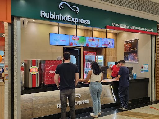 No Rubinho Express do Brasília Shopping, estive duas vezes em 18/10/2023. No almoço, pedi parmegiana de coxão mole; no jantar, lasanha bolonhesa. Menciono o que provei e minhas considerações. A parmegiana estava deliciosa, e o talharim ao sugo e as fritas que a acompanharam também. Não é sempre que gosto dos molhos dos parmegianas. E sobre as fritas, sequinhas e crocantes. Retorno à noite. A lasanha, diferentemente do que eu esperava, vem com guisado sem molho de tomate que dê liga. Mencionei isso ao final, e foi dito que a lasanha continha anteriormente bastante molho e até presunto, com muito mais queijo, era enorme. Hoje, 500g, tamanho ótimo, algum queijo, porém guisado, guisado e mais guisado. É razoável, mata a fome, porém, para o meu paladar, esperava ao menos um pouco de molho. Pedi um segundo suco ao final. Valores pagos. No almoço: R$ 36,90 do parmegiana e R$ 8,90 do suco. Total: R$ 45,80. Janta: R$ 37 80 prato + suco, além de outro suco de R$ 8,90. Recomendo o parmegiana...