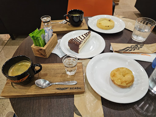 Read moreÉ um café bom por conta da comodidade (ao lado do cinema do Shopping Casa Park), possui boas opções no cardápio, mas que ao final do dia, depende da disponibilidade de ter ou não a venda um ou outro item. Não recomendo por conta do preço, é caro considerando o tamanho dos itens que pedimos, que são pequenos, mas eram saborosos. Valeu a pena pela já citada comodidade e pelo serviço, o Mateus nos atendeu muito bem, foi prestativo e atencioso. Pelos preços praticados, não voltaria a frequentar o café Scada, pois existem outras opções melhores e...