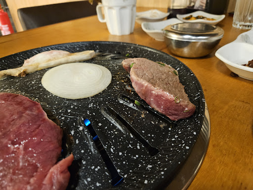 Read moreInfluenciados pela K-Wave resolvemos experimentar a experiência do Churrasco Coreano. Apresenta uma proposta diferente dos rodízios locais, a carne é trazida crua e as pessoas as cozinham em uma chapa com exaustor individual em sua frente. No menu há opções de carnes marinadas e não. Provamos o shoulder e o bulgogi. Devo ressaltar que a carne sem ser marinada vem sem tempero, o que para alguns pode ser um ponto negativo. Porém na mesa são servidos diversos acompanhamentos que conseguem temperar a carne. O molho shoyo com cebolas combinou muito bem com o shoulder! Já a carne marinada já vem repleta de sabor, seria a opção que recomendaria para quem vai apenas para provar uma opção. Pedimos também pratos individuais que estavam muito bons! Para quem não faz questão da experiência do churrasco, diria até que vale mais a pena. Inclusive uma das pessoas da mesa era vegetariana e eles fizeram a troca da carne por cogumelos em um dos pratos para adequação. Atendimento foi muito bom. Garçons apesar de estarem sempre em movimento fazendo algo nos conseguiram dar atenção. E a comida chegou bem rápido. Tivemos o privilégio também de ter uma aula com o dono que nos ensinou a fazer o churrasco e nos deu sugestão de como comê-lo. Fiquei bem satisfeito com a experiência e recomendarei o...