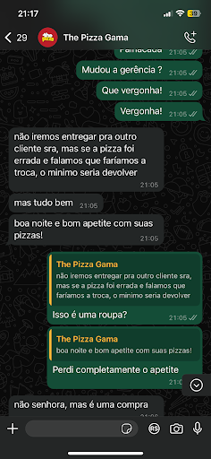 É com muita tristeza que realizo essa avaliação. Era FÃ! Tive uma quebra de expectativa muito grande. Realizei o meu pedido e quando chegou, relatei que veio errado. Se fosse outro sabor de SAL eu deixaria por isso mesmo, já que havia pedido uma broto de doce. Falei do ocorrido, perguntaram se podia ser uma menor, não quis pq estou em família, com minhas avós idosas e primos - enfim, não preciso dar explicação quando ocorreu um erro no pedido-. Como se trata de comida, eu JAMAIS imaginaria que deveria DEVOLVER A PIZZA. Confesso que se tivessem avisado, eu prontamente teria devolvido apesar de ache estranho, mas não houve essa comunicação. Quando chegou a pizza, já fui agradecer pela prontidão em resolver o problema- LEDO ENGANO. A atendente veio solicitar a devolução da outra pizza, fiquei muito surpresa e constrangida com isso. Afinal, fui pega de surpresa e ainda foi deixado a entender que eu levei vantagem sobre o erro. Por fim, espero que melhorem o atendimento pq a pizza é realmente boa, isso não posso negar, mas sem um atendimento excelente, não vale apena o estresse. Eu perdi a fome, a vontade comer e acredito que nem tão cedo retorno a fazer pedidos nesse lugar. Que fique o feedback. Avisem, com letras maiúsculas, em negrito, AVISEM! O combinado...