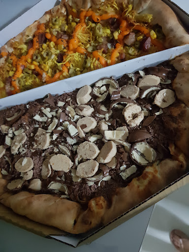 Sem duvida é uma das pizzas mais saborosas de Taguatinga! Mas gostaria de deixar uma sugestão de melhoria e aprimoramento. Assim como é feita na pizza doce de chocolate (na foto ela está gelada para melhor apresentar o que desejo falar) onde a quantidade de recheio é surpreendente .... As pizzas salgadas deveriam ser também generosas com o recheio, pois parece um filete. Talvez pela quantidade ela esfria muito rápido e perde toda e total suculência .... Lembrando que o sabor dela é perfeito .... Assim como a qualidade do chocolate 🍫🍫 que é incrível ... Outras pizzas da região focam bastante no quesito suculência (quantidade de recheio) também em Taguatinga .... Então não estou falando sobre sabor, tamanho, atendimento (que é impecável). O único problema é a falta total de suculência dos ingredientes do recheio o que faz com que, mesmo ontem ter ido buscar de carro, ao chegar em casa ela já estava em processo de esfriamento. É uma lógica da Física ... Se temos poucas moléculas a tendência é que a energia do meio ambiente venha ser assumida pela "🍕" ... Com uma tendência de que ela fique fria mais rápida. O tempero do molho é talvez o melhor que já provei ... E mais uma vez o que falo aqui é sobre a...