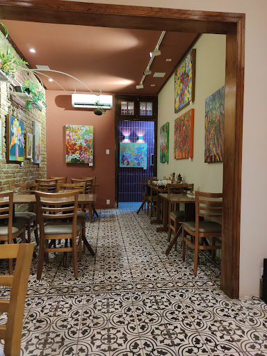 Read moreUm café... Bistrô... E também uma galeria de artes. Que tal? Pois é. É tudo isso que você vai encontrar nesse local escondido e tão charmoso. A decoração é linda, e como disse também é local de exposição (e venda) de obras de arte. Fomos jantar, e pedimos um linguini de camarão com limão siciliano e um risoto acompanhado de carne suína. Todos maravilhosos. Uma experiência única. Combinar, alta gastronomia com boa música ambiente, decoração, arte e de quebra um excelente papo com os proprietários, que, como a casa estava um pouco vazia, bateram um papo maravilhoso conosco. Altamente recomendado....